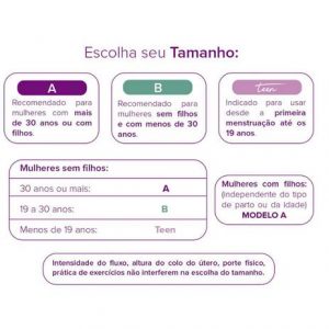 A quantidade de fluxo, porte físico da mulher, altura do colo do útero, tipo de parto e o fato de praticar atividades físicas não interferem na escolha do modelo.
